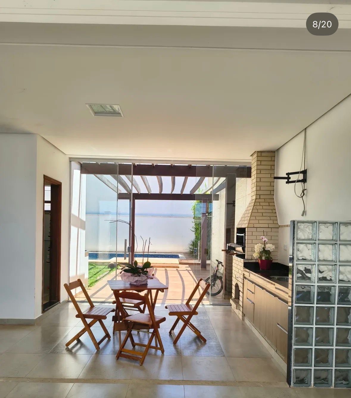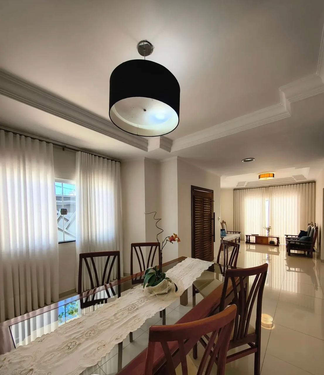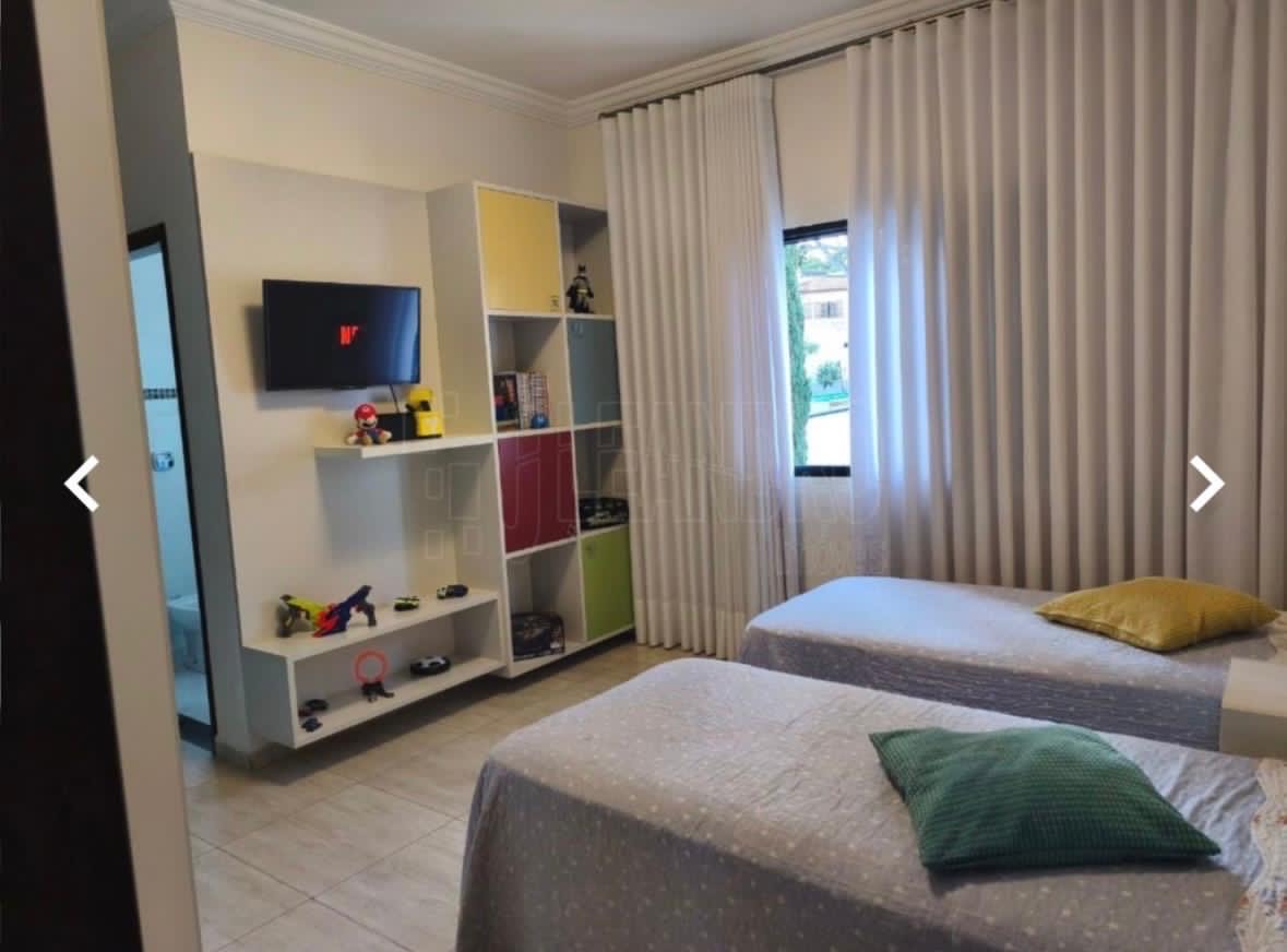 No poiso inferior, cozinha com dispensa, área de serviço, sala de estar e jantar, sala de TV com ar condicionado, no piso superior 4 suítes, com aemários embutidos, 2 com ar condicionado.