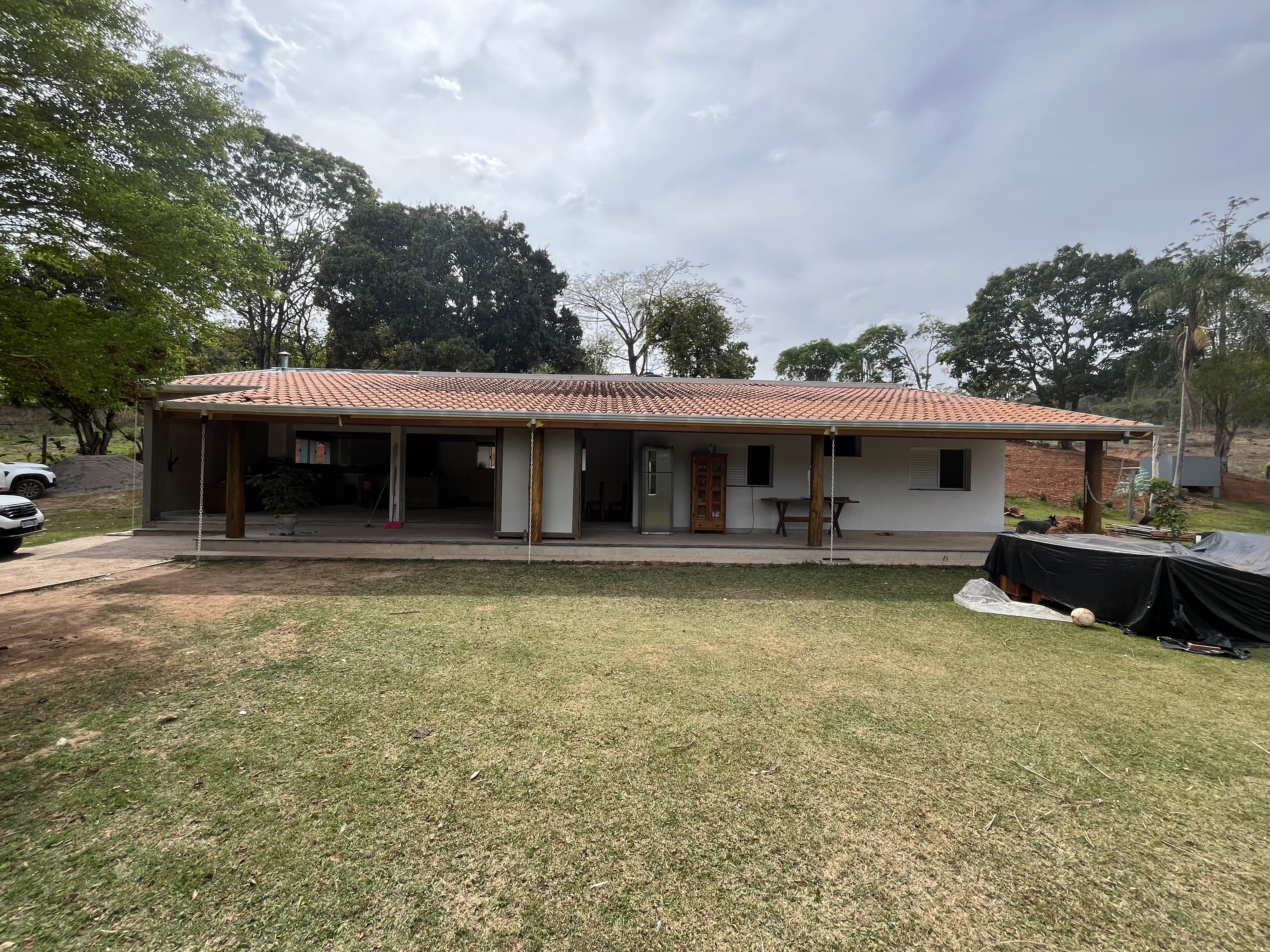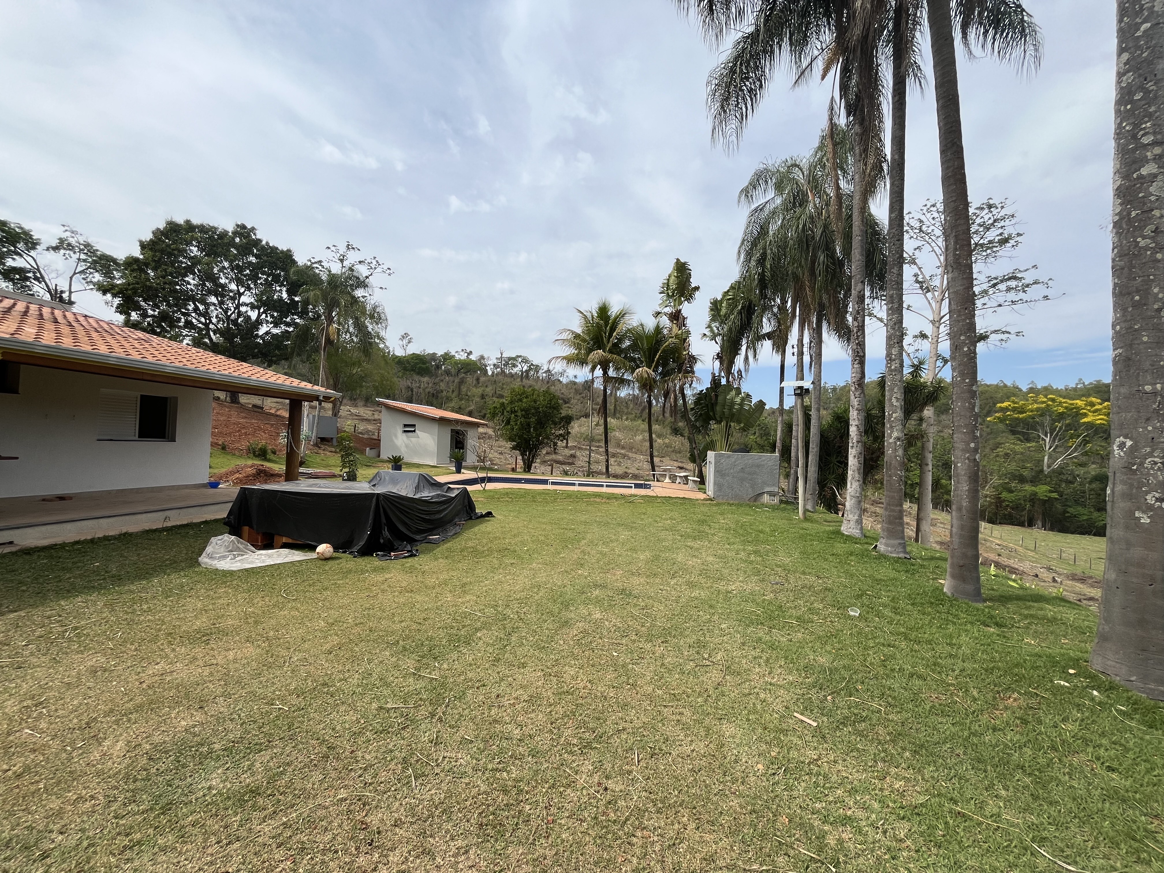 Linda Chácara de 20 mil metros, recém construida, em fase de acabamentos com casa com 3 quartos, sendo uma suíte com closet, banheiro social, área de lazer ampla com churrasqueira e fogão a lenha, piscina com 2 vestiários, linda jardinagem, barracão de despejo e um grande área em pasto.